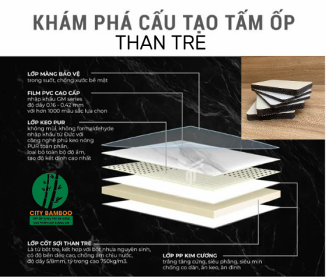 Tấm ốp than tre City Bamboo có cấu tạo 6 lớp chính